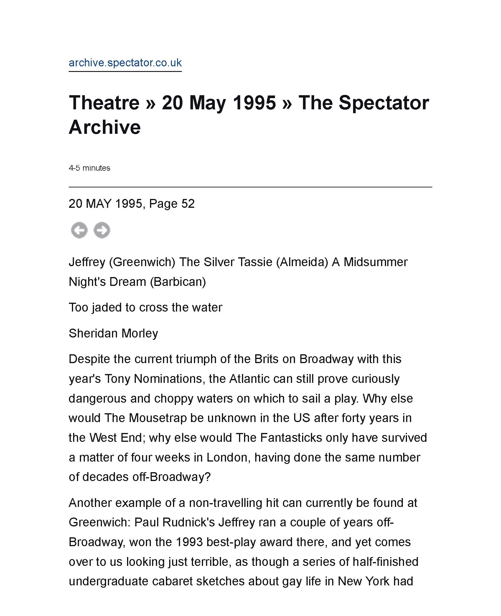 - Directed by the co-founder of Rough Magic, with whom Brendan previously toured Ireland.